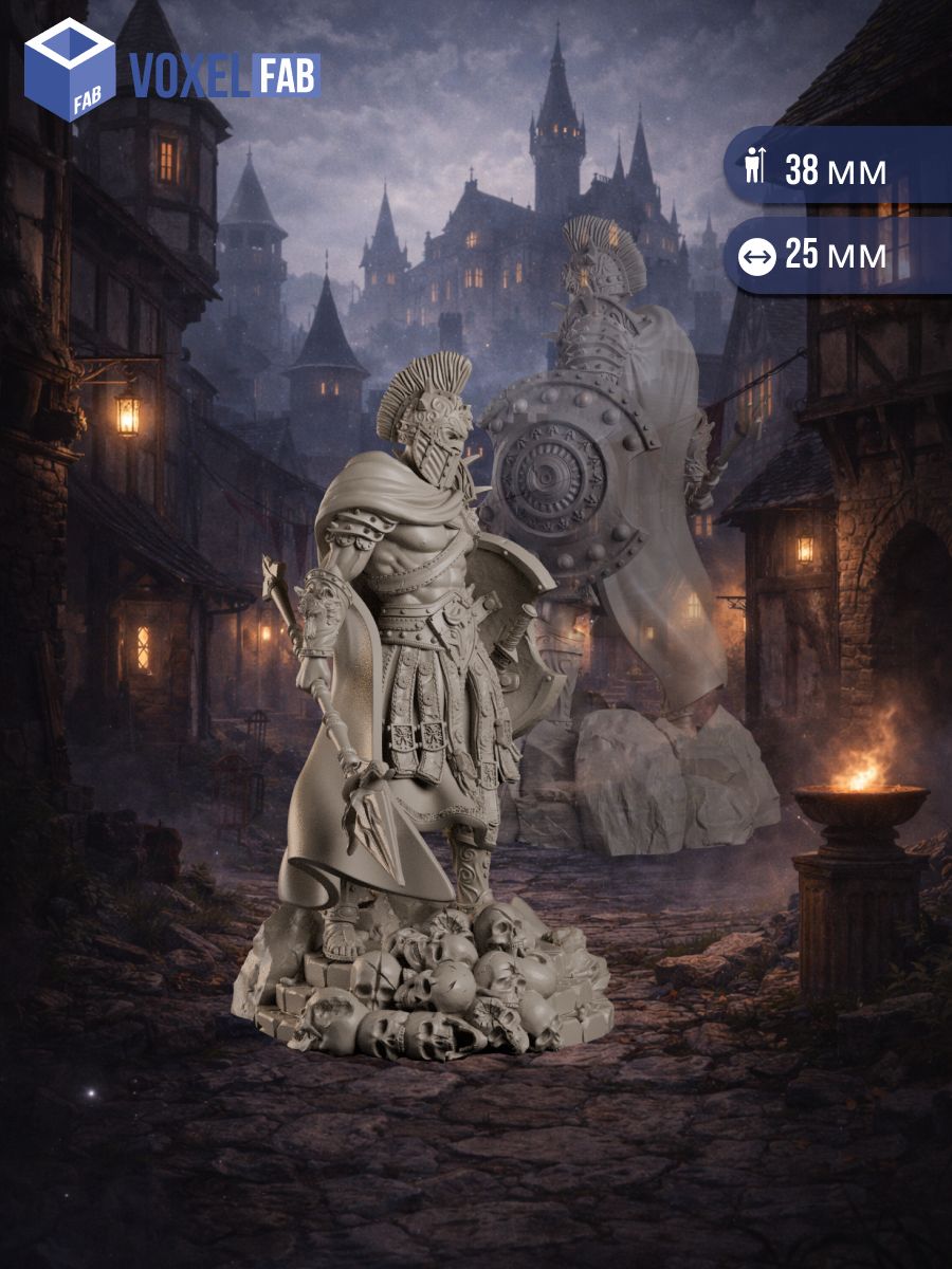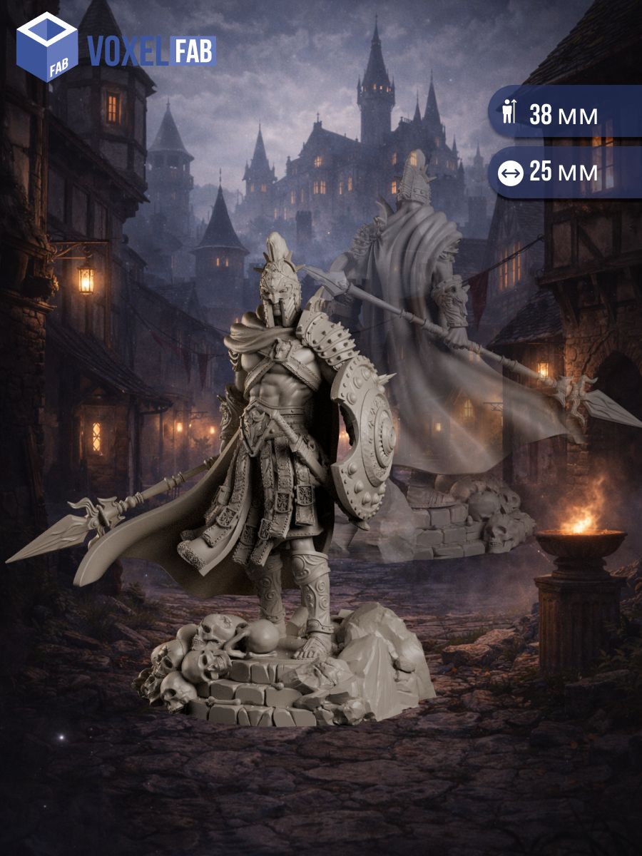 Эта миниатюра отлично подходит для героя-воина, полководца на передовой, личного чемпиона лорда или сурового защитника отряда, который держит строй там, где его невозможно держать. Идеальна для сцен последнего рубежа, у горящих улиц, на развалинах крепостных ворот и в эпизодах, когда партия понимает: иногда спасение приходит в виде поднятого щита и выставленного копья.