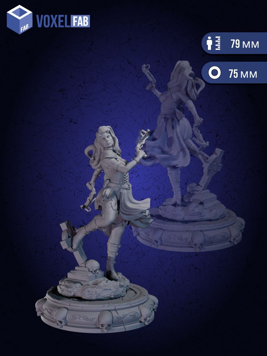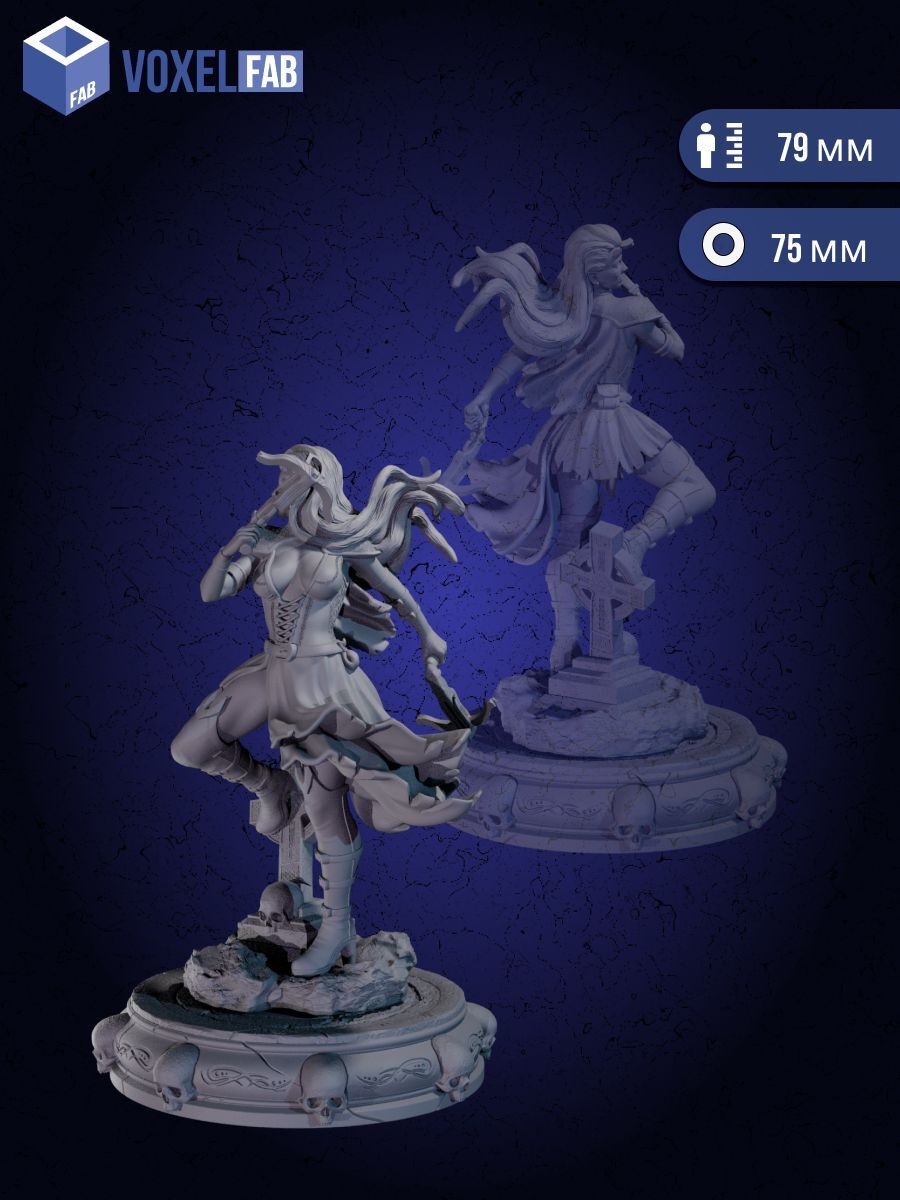 Миниатюра «Демоническая охотница» — детализированная фигурка высотой 79 мм, созданная для росписи, коллекционирования и настольных ролевых игр. Подходит для D&D, Pathfinder, различных фэнтези-сеттингов и авторских кампаний. Отличная детализация элементов брони, оружия и базы позволяет добиться выразительных эффектов при покраске.