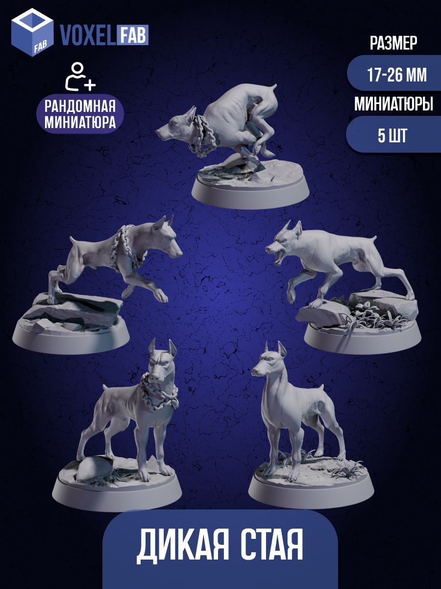 Набор миниатюр «Дикая Стая» 17–26 мм — 5 детализированных фигурок хищников для DnD, Pathfinder, Warhammer и фэнтези-настолок.