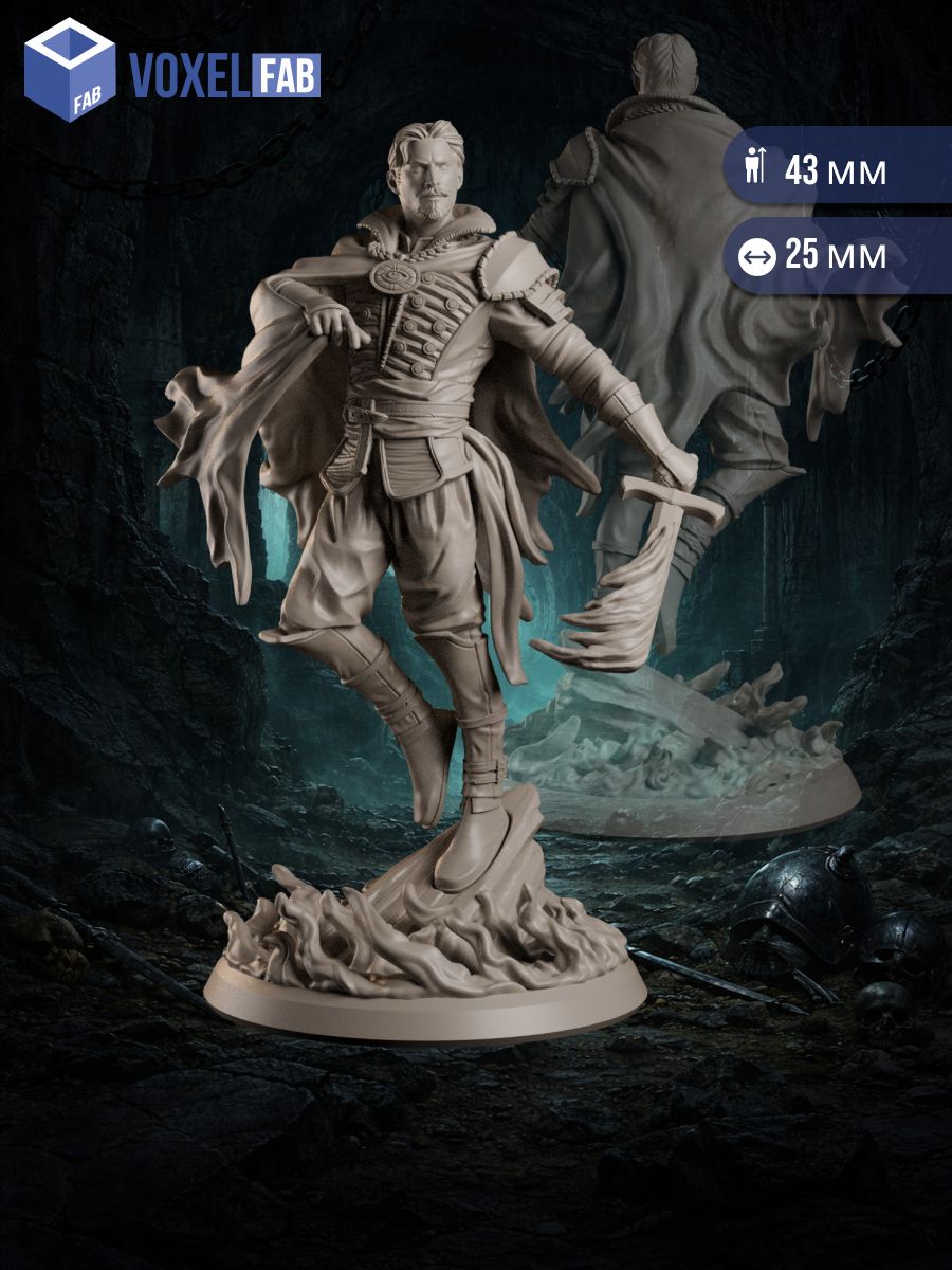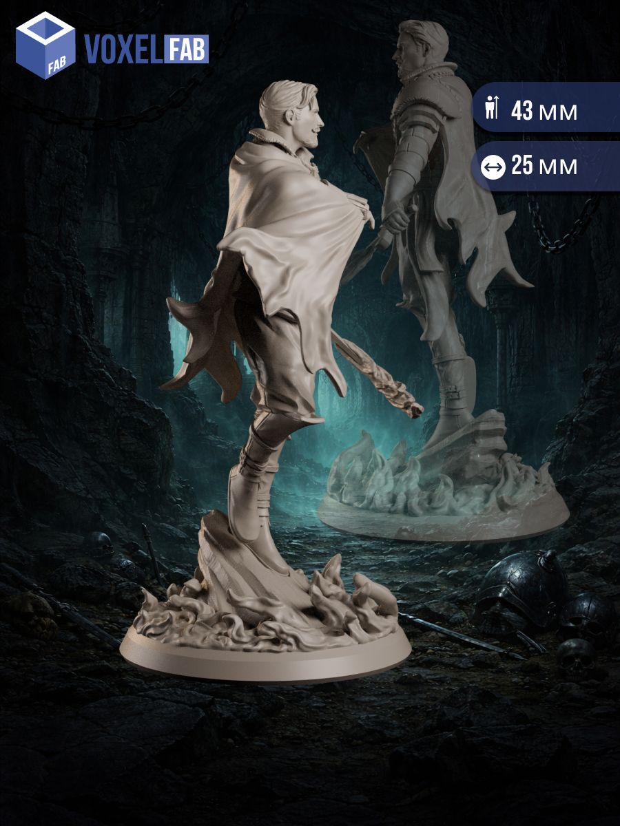Выразительная поза, развевающийся плащ и динамичная база делают миниатюру центром внимания на игровом столе.