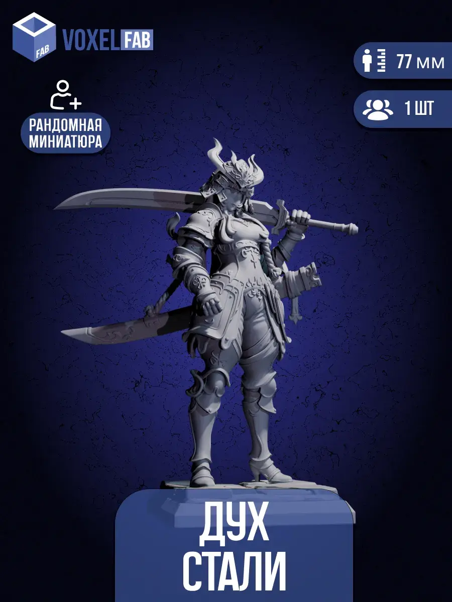 «Дух Стали» — это миниатюра, воплощающая идеал воина, чья воля закалена не меньше клинка. Величественный доспех, узоры древних мастеров и холодный взгляд героя, готового к последней битве, делают эту фигурку настоящим произведением искусства.