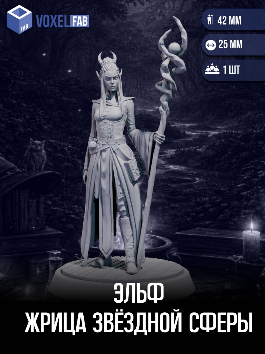 Жрицы Звёздной сферы — редкий орден высших эльфов, чья магия связана не с землёй или стихиями, а с движением небесных тел и холодным светом далёких миров. Их посохи служат фокусом для астральной энергии, а сфера на вершине — проводником между звёздами и смертным миром.