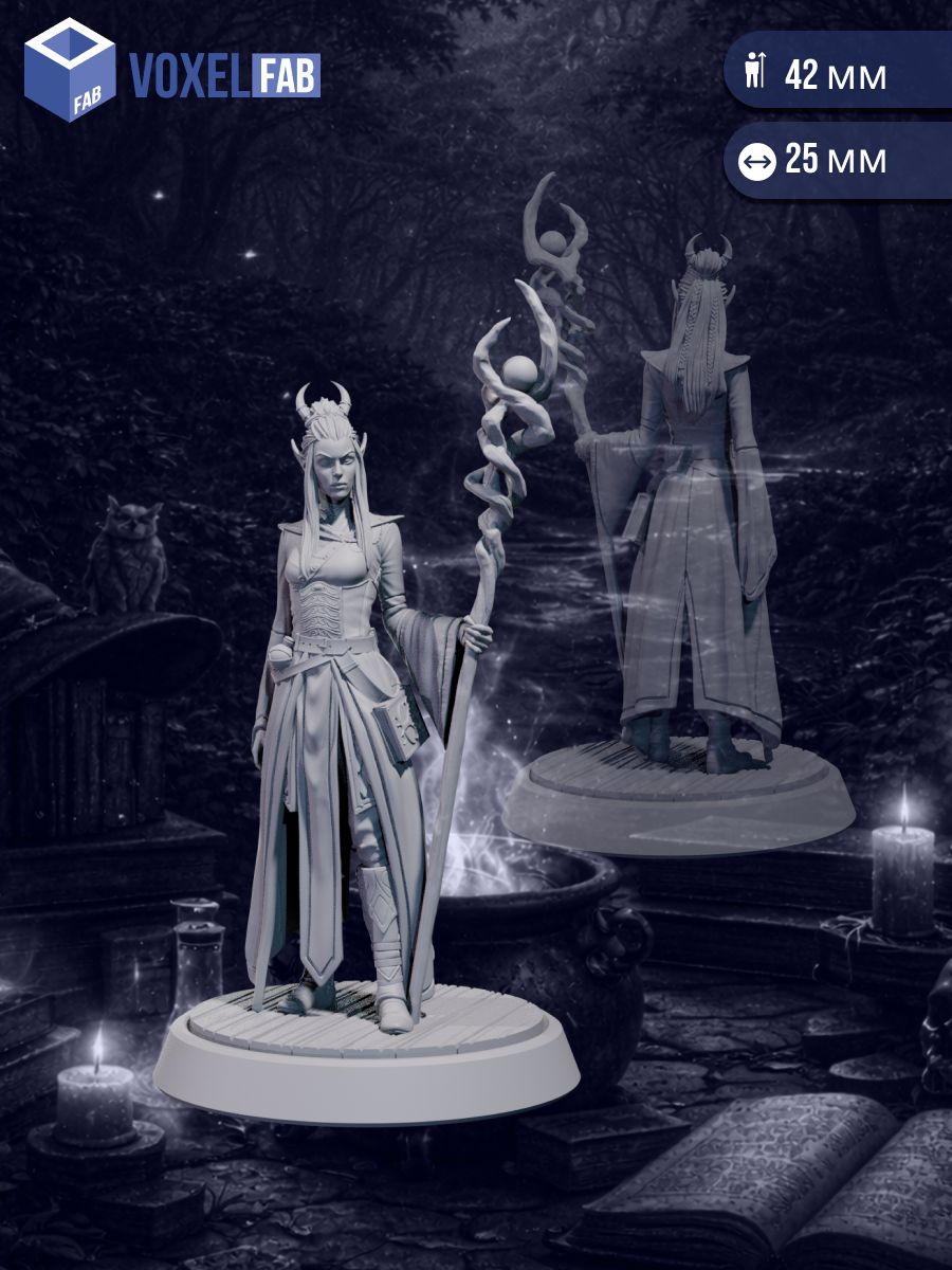 Миниатюра отлично подойдёт для фэнтези-сеттингов, настольных RPG и варгеймов. Универсальный образ позволяет использовать её как персонажа высших эльфов, тёмных эльфов или астральных культов в классических и мрачных мирах.