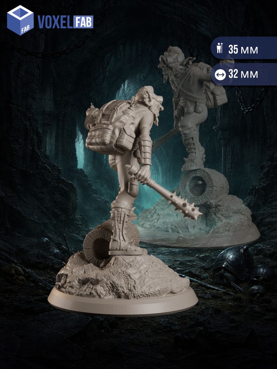 Эта миниатюра отлично подойдёт для сцен засад, диверсий и панических побегов: как взрывной НПС, безумный подрывник на службе у главаря, отчаянный наёмник гоблинской банды или маленький, но очень громкий антагонист, который превращает любую встречу в хаос и азартное приключение.