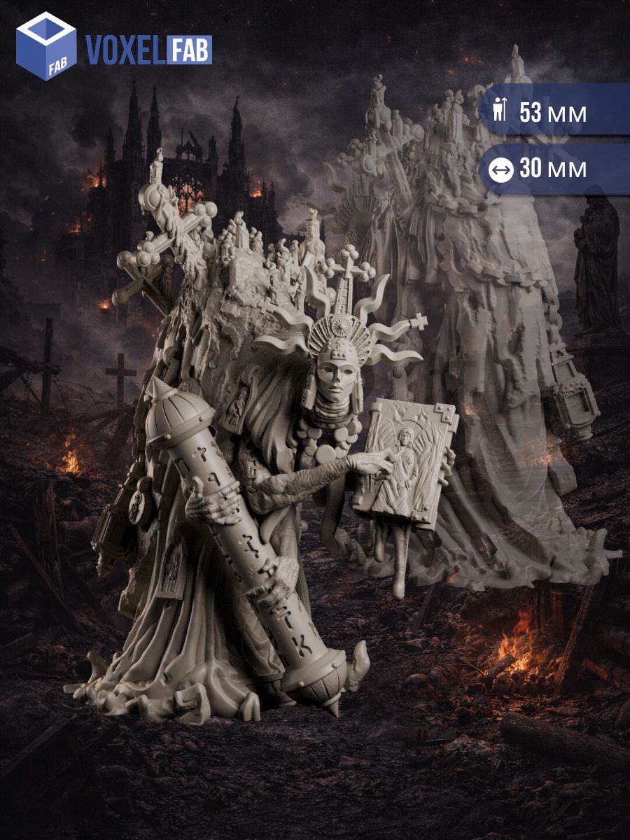 Эта миниатюра отлично подходит для сцен в разорённых святынях и окопных часовнях, для мрачных проповедей перед штурмом, допросов в походной канцелярии и встреч, где герои понимают: перед ними не союзник и не враг, а живой закон, которому всё равно, на чьей вы стороне.