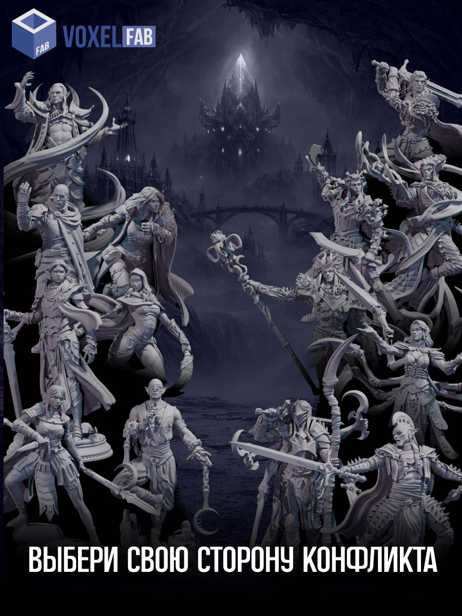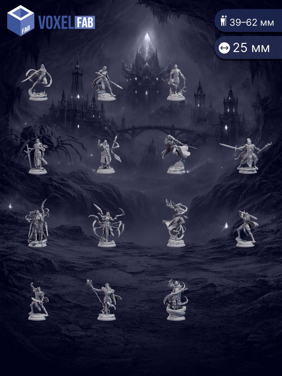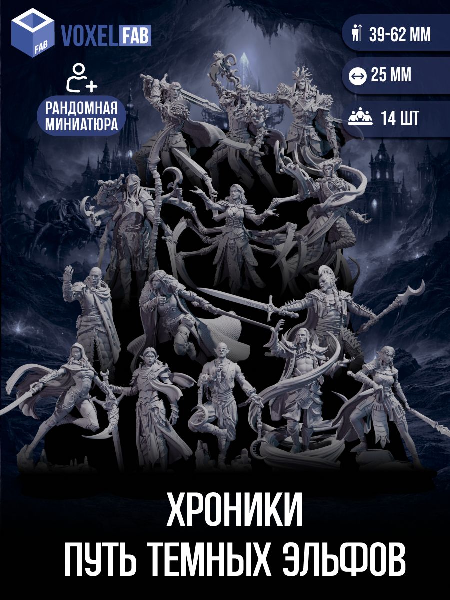 Тьма подземных городов хранит свои тайны. Тёмные эльфы веками ведут скрытую борьбу за власть, знания и выживание, следуя собственному пути, где интриги и жестокие решения определяют судьбы целых домов. Этот набор объединяет ключевых представителей их общества — воинов, магов и лидеров, готовых встать на любую сторону конфликта.