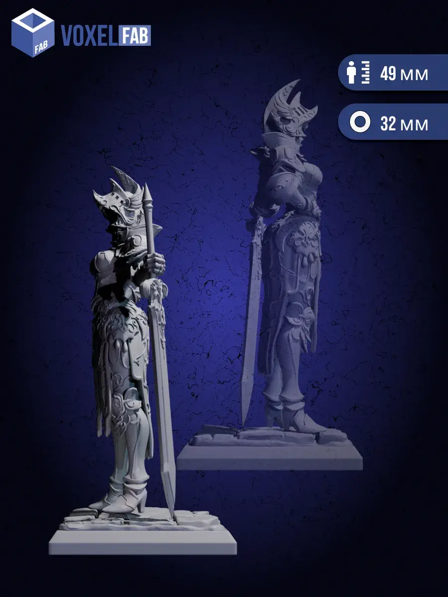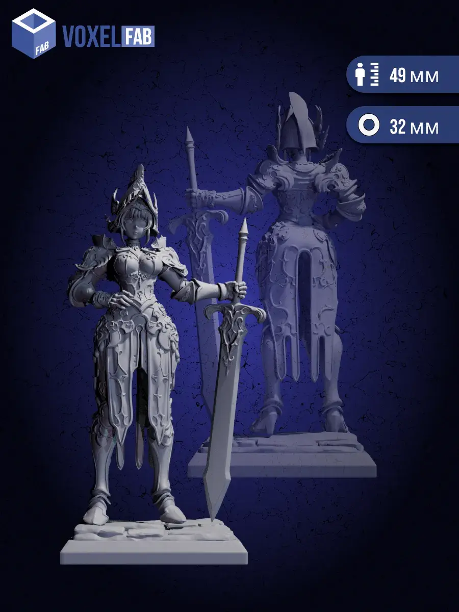 Её меч, выкованный в огне древних кузниц, отражает первую зарю, а изящные доспехи сочетают грацию и неуязвимость.