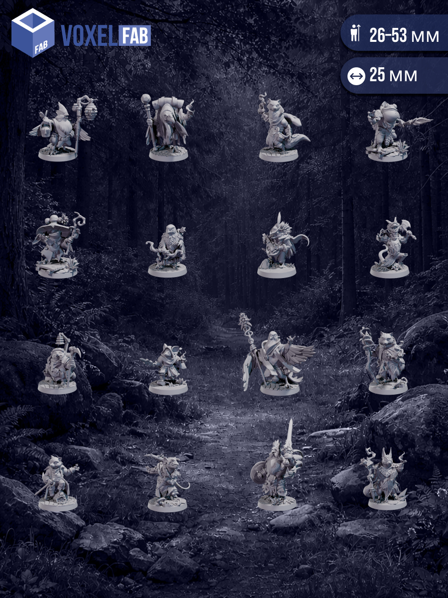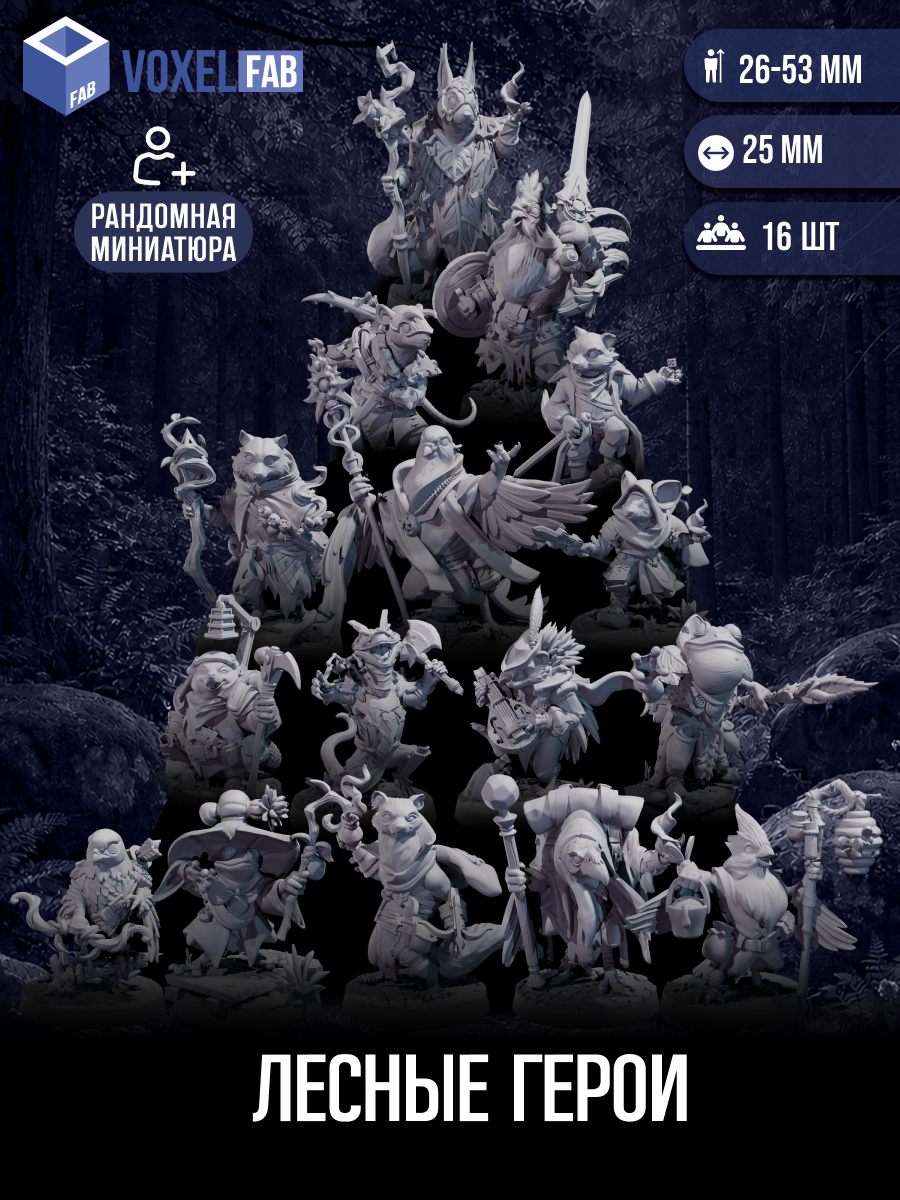 Лесные герои — сюжетный набор миниатюр для настольных ролевых игр, в первую очередь D&D и совместимых систем. Он представляет собой группу обитателей диких земель, объединённых общей историей и окружением, но при этом достаточно разноплановых, чтобы органично встроиться в уже существующую кампанию. В наборе собраны персонажи разных архетипов: бойцы, маги, ассасины, поддержка и харизматичные герои второго плана. Они могут выступать как единая сторона конфликта, союзники игроков, независимая фракция или ключевые NPC, связанные с лесами, древними руинами и пограничными территориями цивилизации. Набор не навязывает жёсткий сценарий, а даёт основу для собственной истории: защита священной рощи, борьба за контроль над торговыми путями, древний культ в чаще или неожиданный союз лесных народов перед лицом общей угрозы. Он представляет собой группу обитателей диких земель, объединённых общей историей и окружением, но при этом достаточно разноплановых, чтобы легко встроиться в уже существующую кампанию.