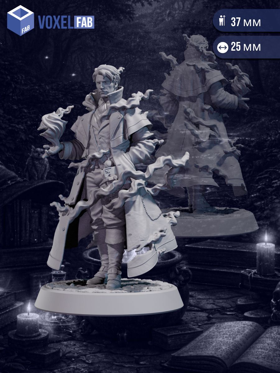 Маг: Заклинатель эфира — геройская фэнтезийная миниатюра, изображающая опытного мага, управляющего потоками чистой магической энергии. Эфирные завихрения, окутывающие фигуру, подчёркивают контроль над тонкими силами, недоступными обычным чародеям.
