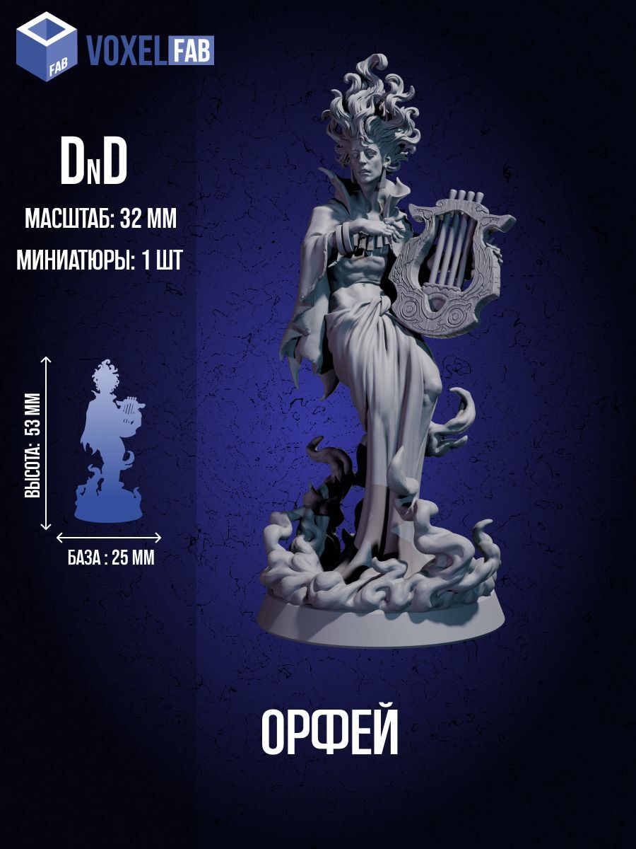 Эта детализированная миниатюрная модель представляет собой Орфея — легендарного барда и музыканта, чья лира способна укрощать диких зверей, передвигать камни и даже покорять сердца богов и смертных. Вдохновленная мифами о силе музыки и её способности преодолевать любые преграды, эта модель отлично подойдет для настольных ролевых игр, коллекционирования или diorama.