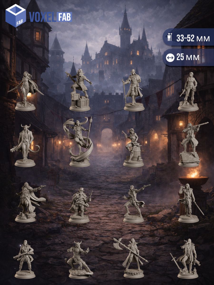 Здесь собрались разные характеры и роли: хладнокровные стрелки, харизматичные лидеры, ловкие налётчики, странные союзники и те, кто предпочитает решать вопросы быстро — пока в воздухе ещё висит запах пороха. Каждая фигура выглядит как отдельная история: сделка, предательство, охота за артефактом или побег с добычей через ночной город.