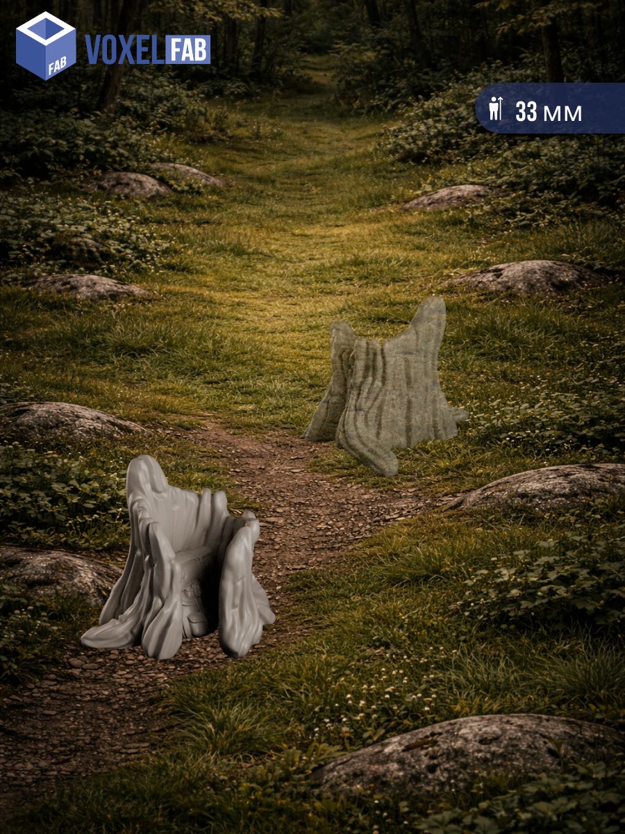 Этот террейн создаёт ощущение дикого, забытым миром места, где природа медленно пожирает следы цивилизации. Он одинаково хорошо работает и как укрытие для засады, и как жуткая декорация для ритуала, и как след недавней схватки, где деревья стали немыми свидетелями.